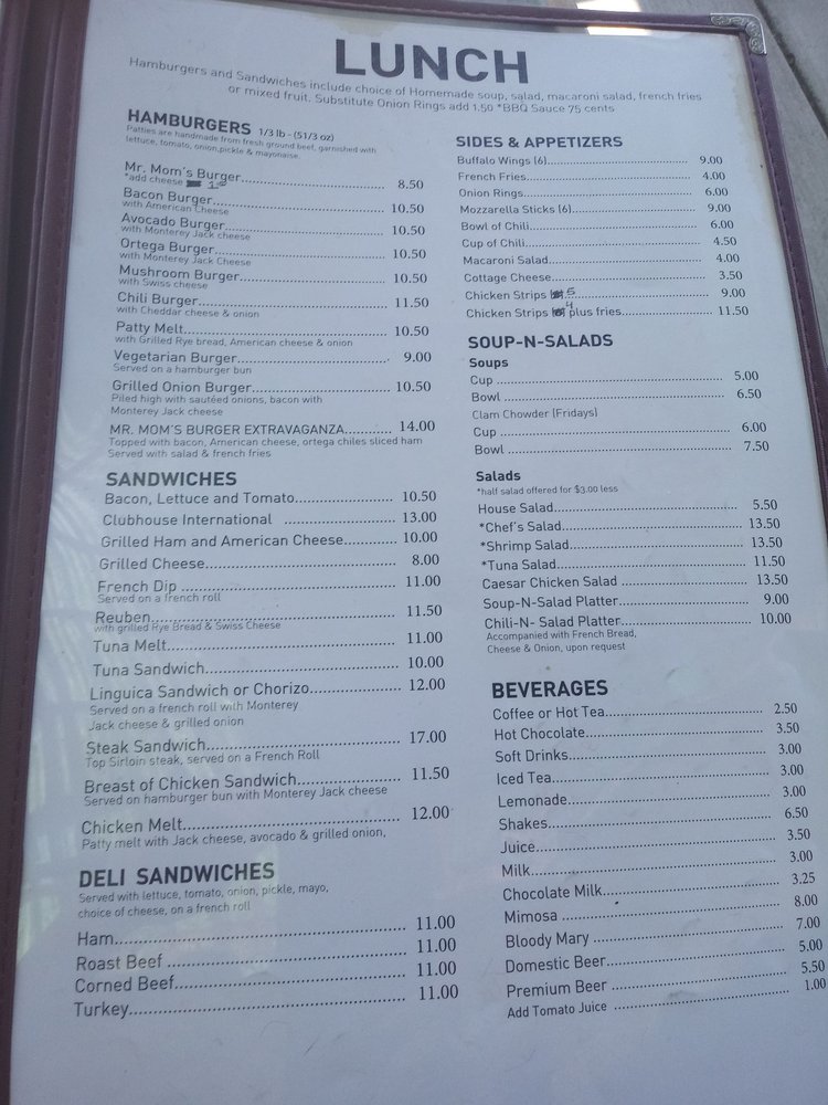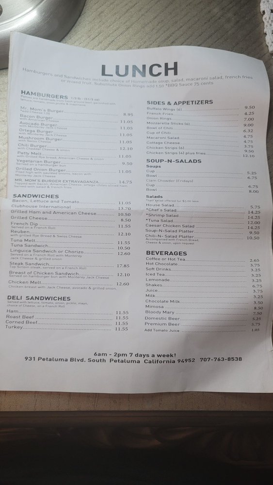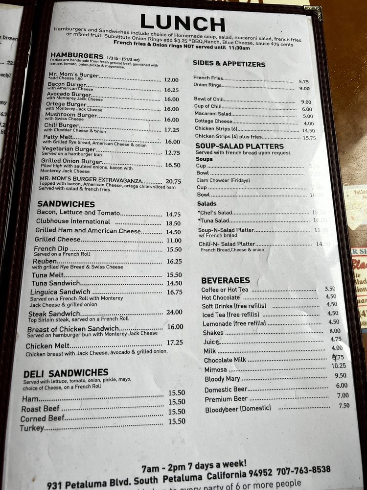 Mr. Mom's Cafe Menu (2025 Update)